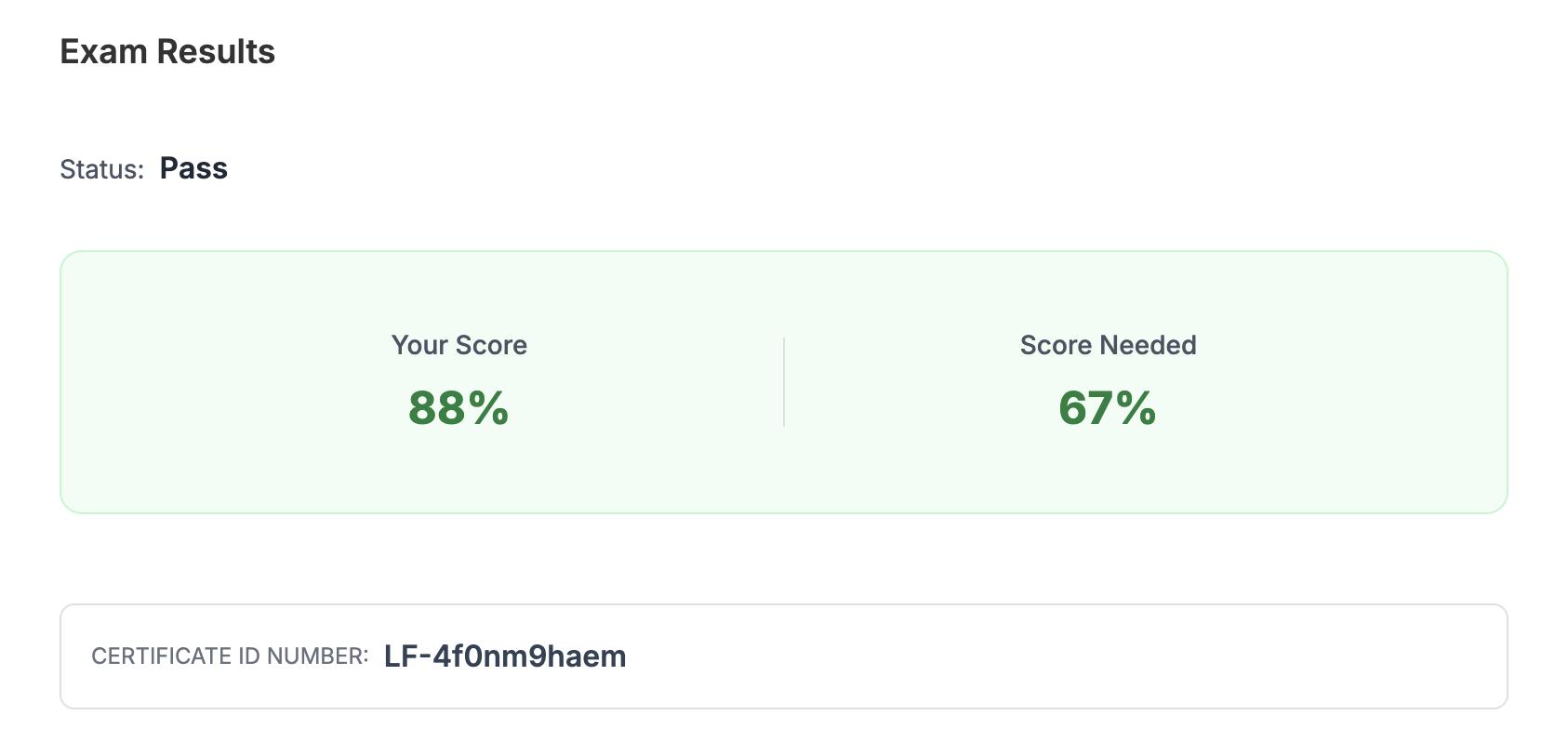 有了兩次 CKA 的考試經驗,加上充足的練習,考試的心情就有比較穩定,不過也還是兩個小時寫好寫滿,沒有太多多餘的時間進行檢查。最後是 88 分通過,考試結果通知也是在完成考試約 24 小時後收到。